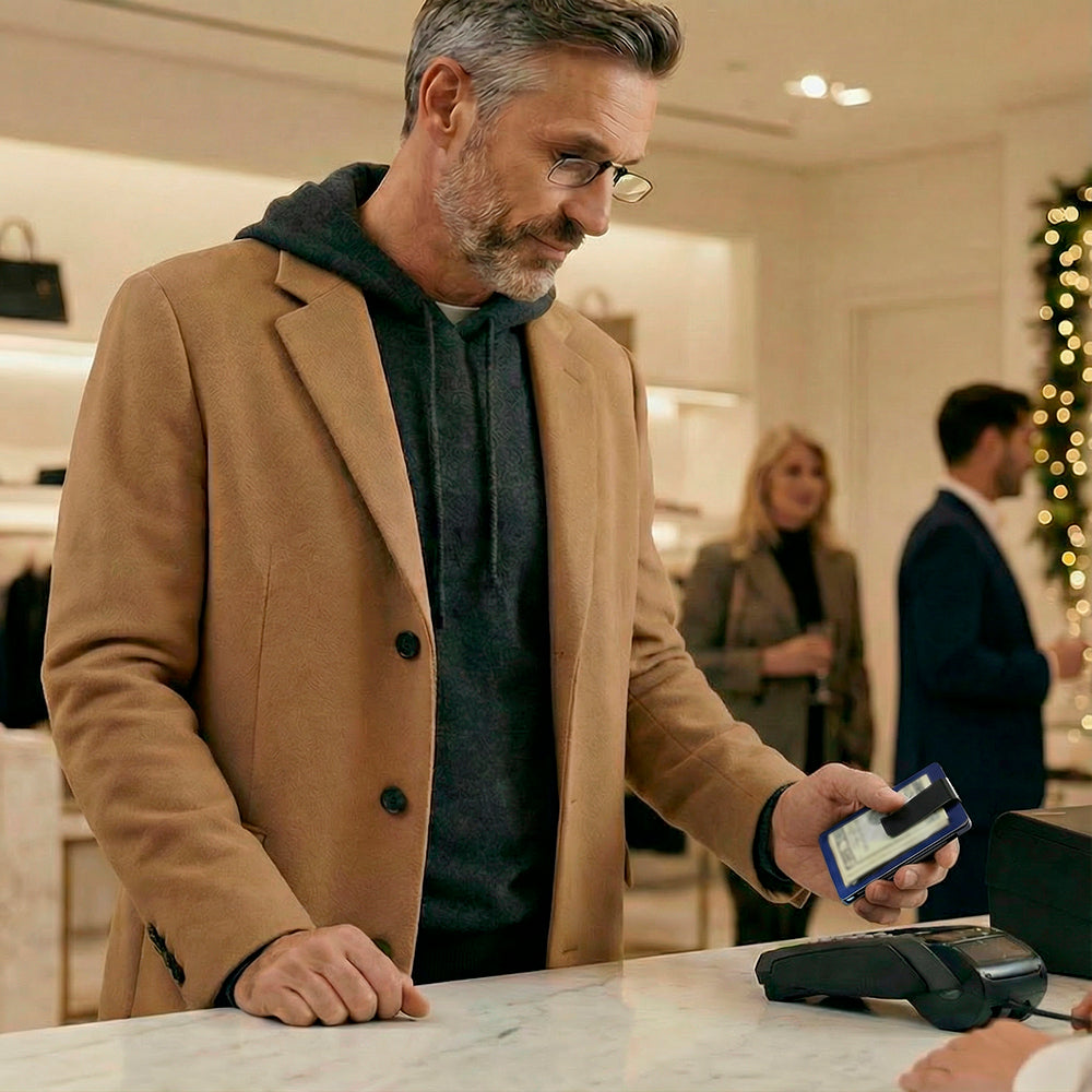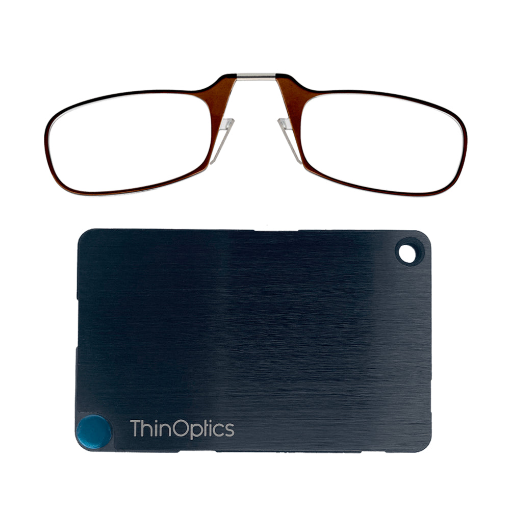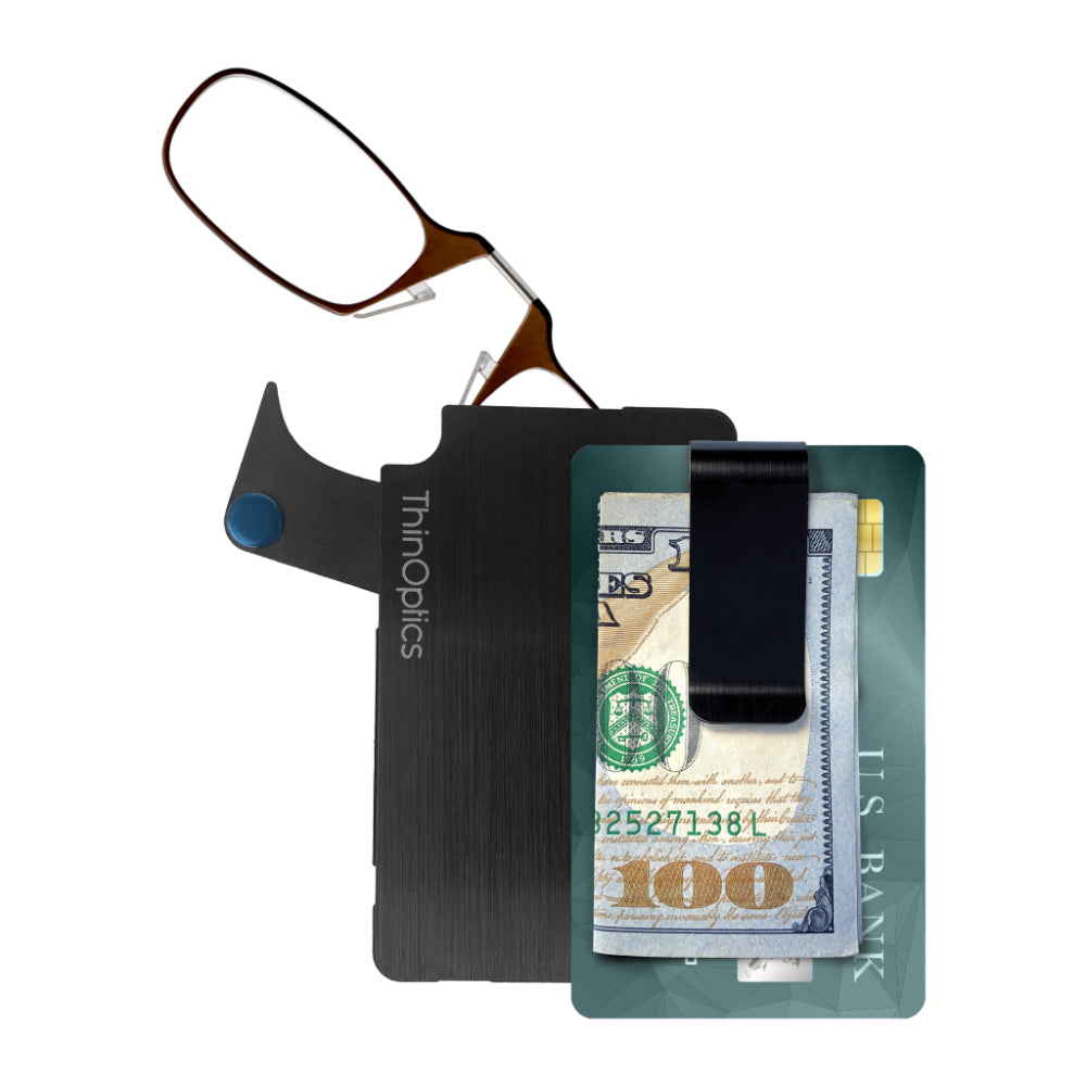 - Made from brushed stainless steel with PVD coating for increased impact strength and excellent abrasion resistance, the ThinOptics Readers + Flashcard Wallet looks great and securely holds everything you need.